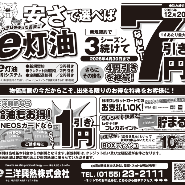 灯油新規ご契約キャンペーンのお知らせ【~2025/12/20まで】
